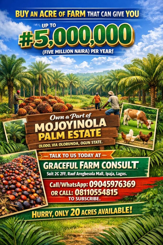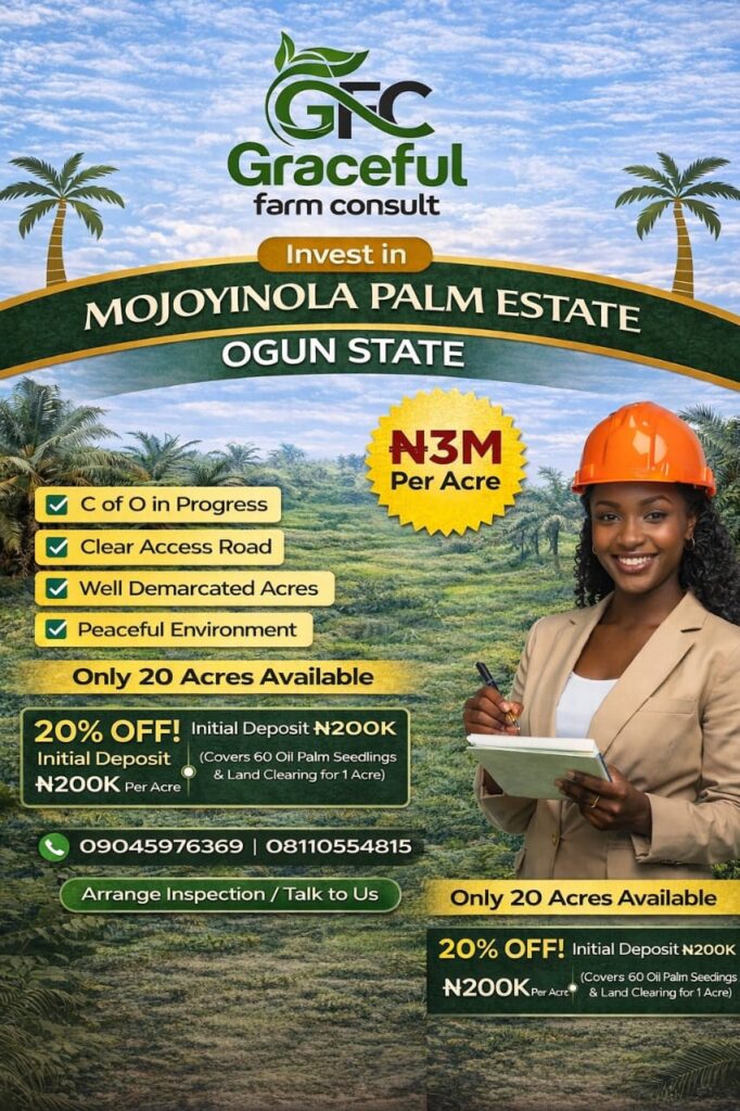 Are you looking to build long-term wealth through agriculture? Grateful Farm Consult is opening subscriptions for our managed Oil Palm Plantation Project in Ogun State.